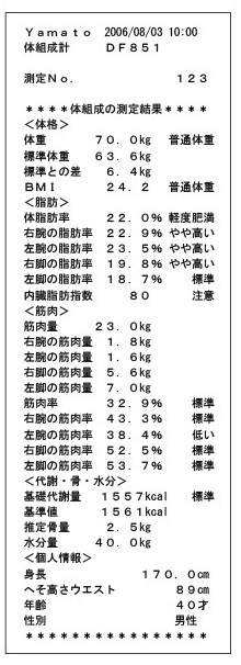 全教室にて高精度型 体組成計にて体内検査ができます(無料測定)